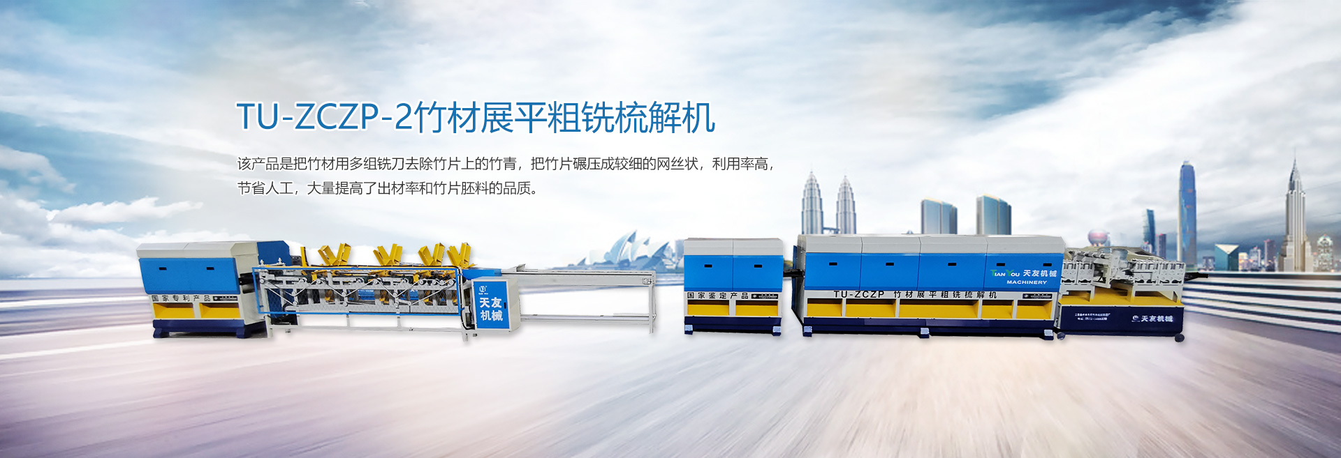 本廠生產(chǎn)的“天友”牌竹木兩大系列機械產(chǎn)品,品種齊全,包括(竹木機械、重竹設(shè)備、竹筷成套機械、牙簽成套機械、刨篾機、包裝機、竹地板成套設(shè)備、竹涼席成套設(shè)備、砂光機、破竹機、拉絲機、精刨機、帶節(jié)雙生筷、天削筷機械等) ,結(jié)構(gòu)新穎,質(zhì)量上乘,以完善的售后服務(wù)體系深受客戶的好評。